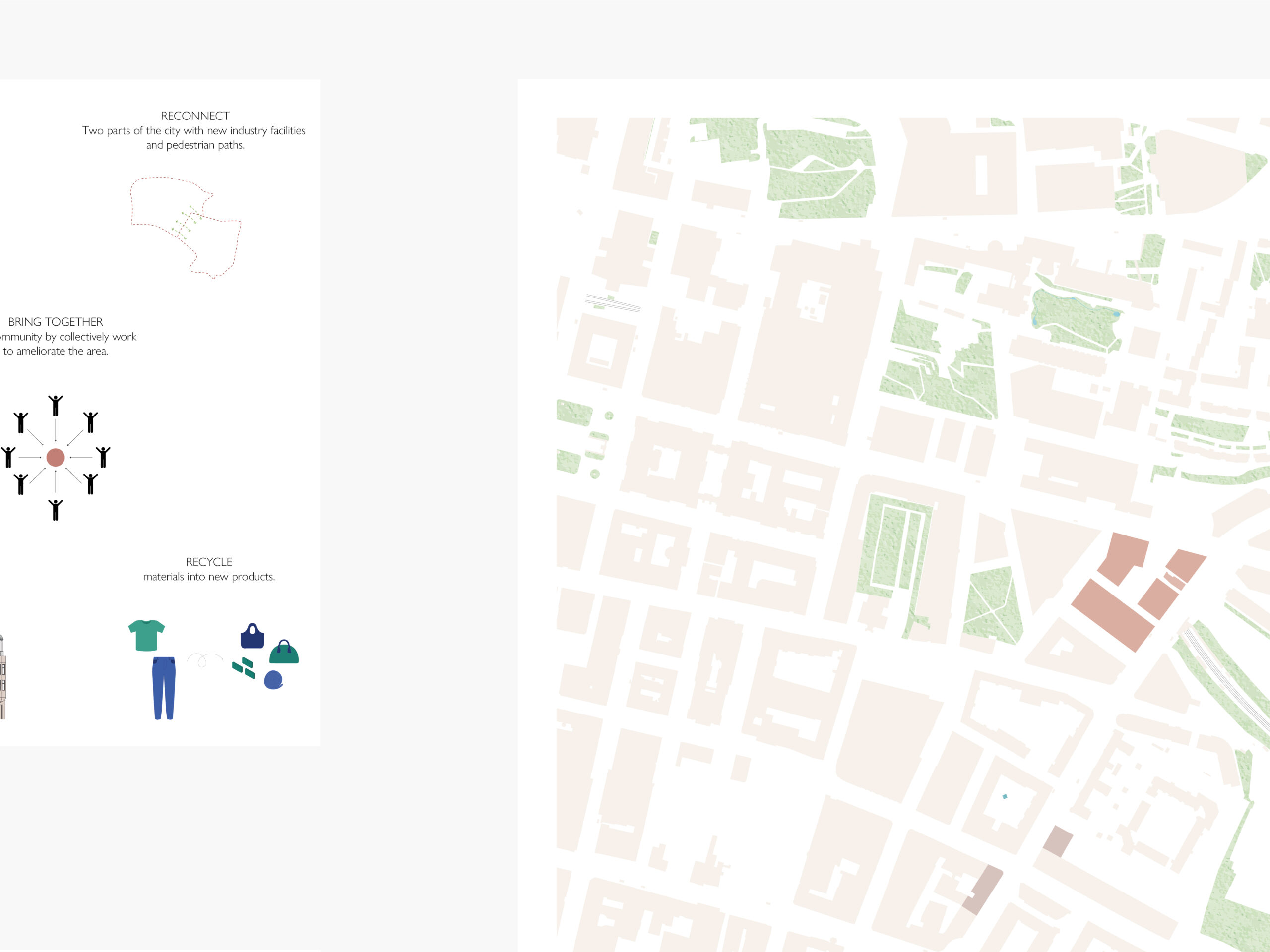 As part of a bigger development the disused buildings along the Street will be repurposed as selling points for artifacts and materials made reusing textiles.