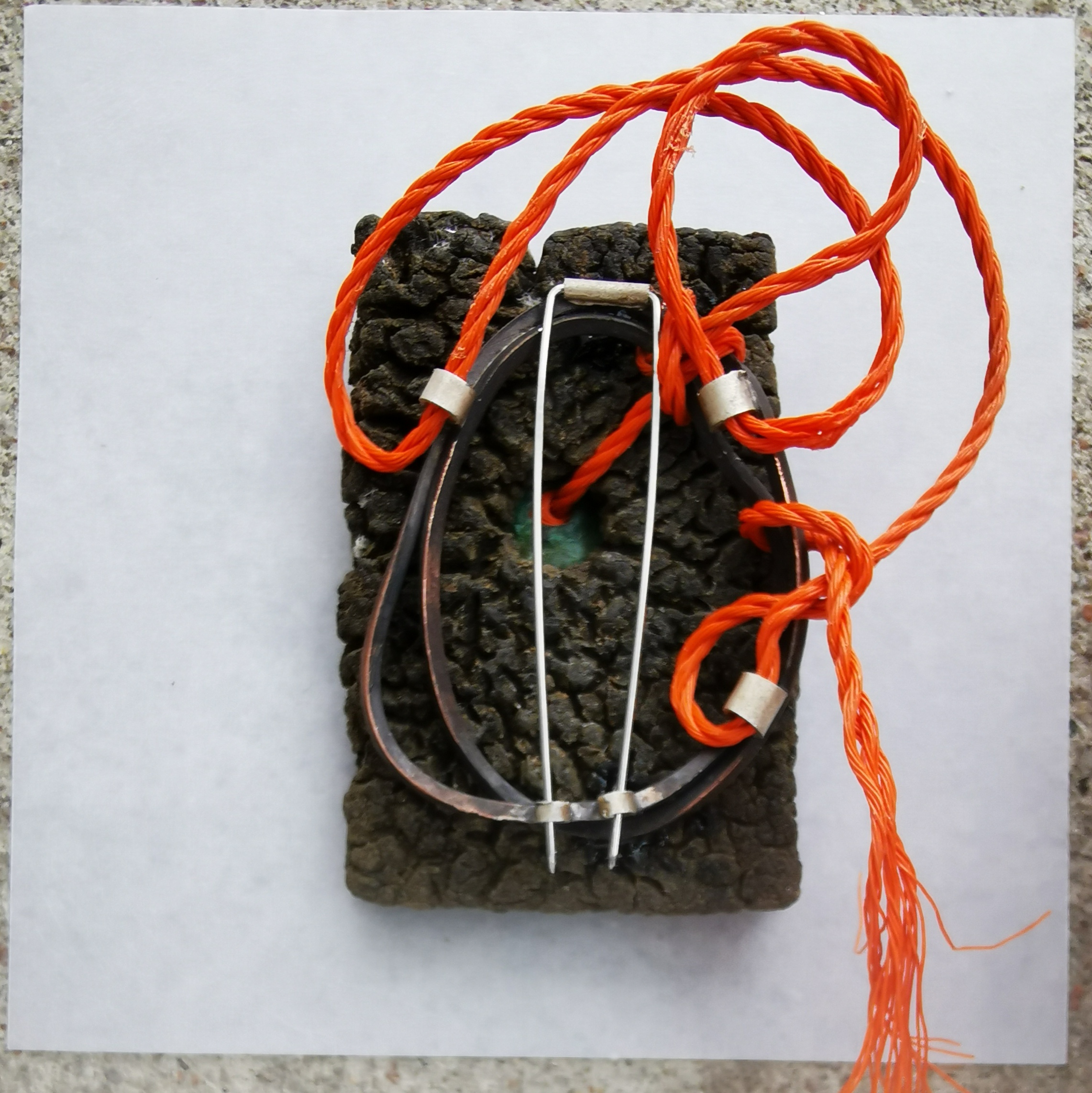Materials : A-Z – Aluminium, Cold process Enamel, Electrical Wire, Copper, Fishing line, Found Objects, Gold, Paint, Patina, Marine Plastics, Reclaimed Fibres, Rope, Silver, and Steel.