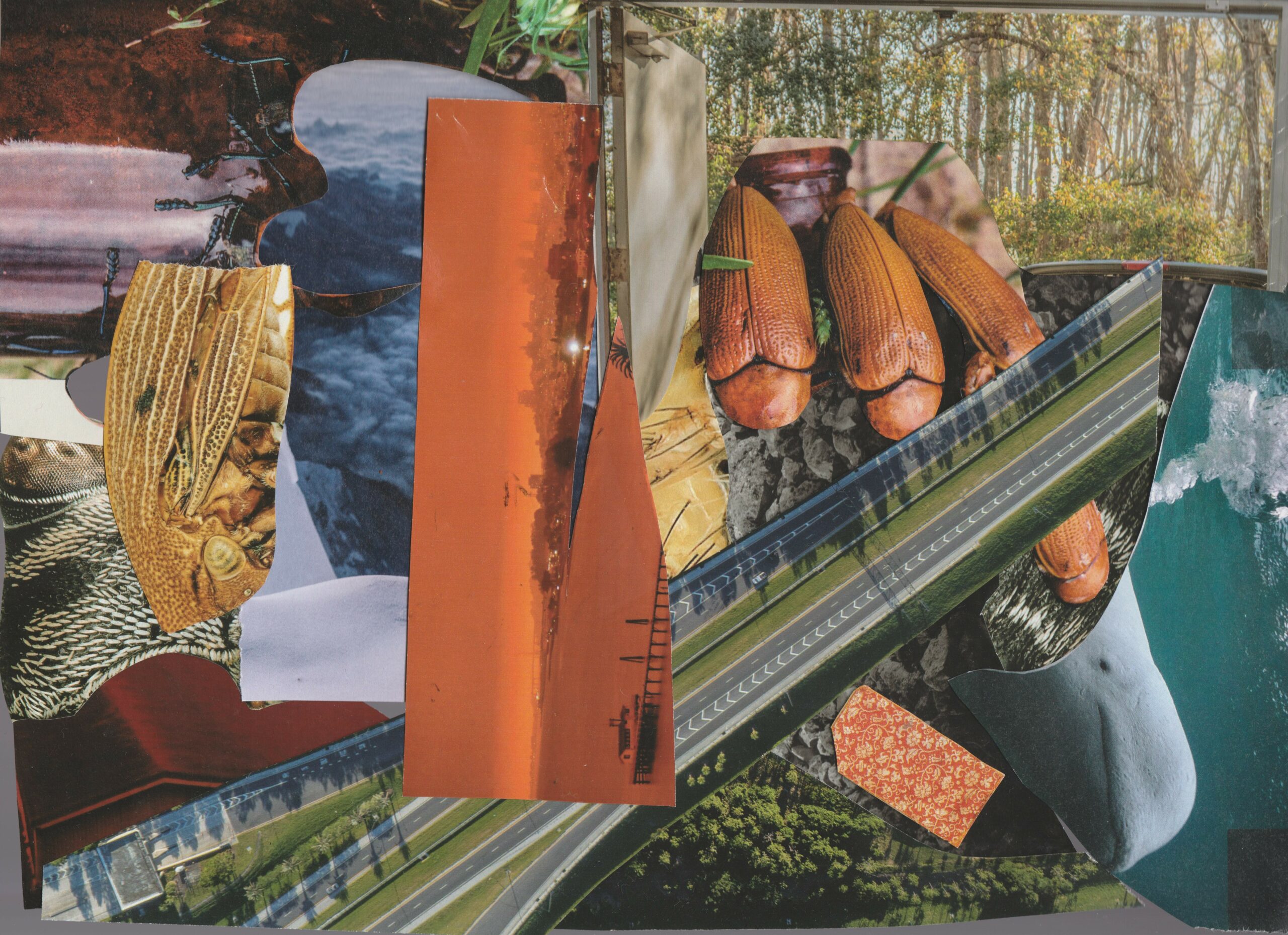 Using sounds recorded in various locations on my phone’s Voice Memo app, I decontextualised found images with the found sounds, creating new meaning through the compositions of audio and imagery. The compositions of these Sound Collages was entirely accidental, putting cutouts on a scanner randomly and seeing where the outcome takes me.